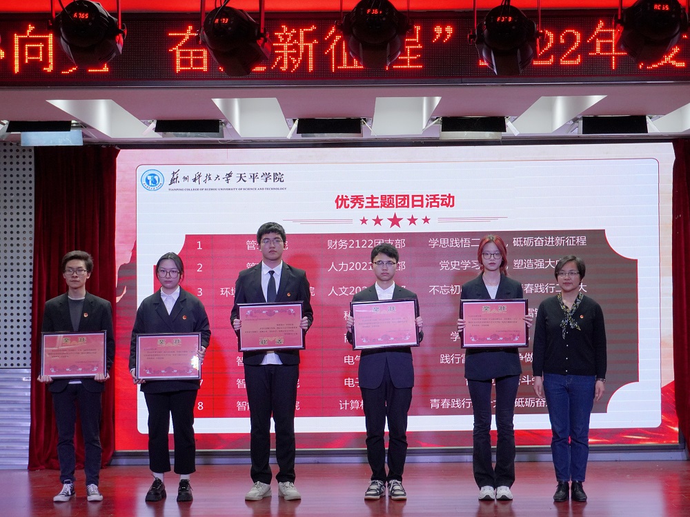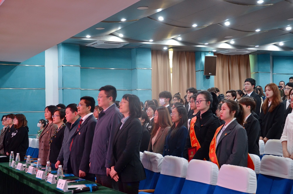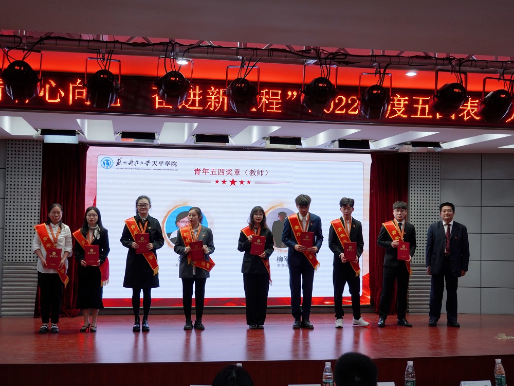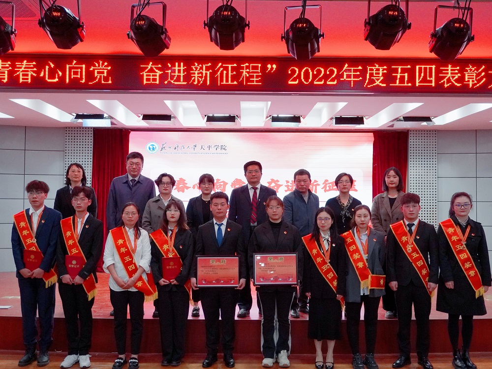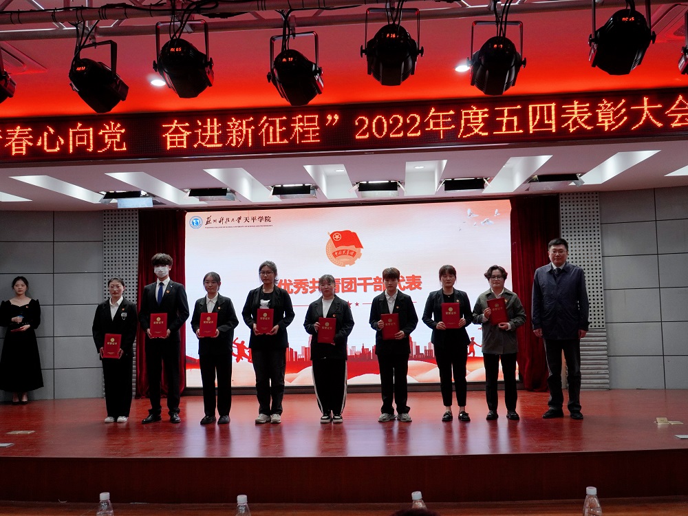 在学习宣传贯彻党的二十大精神之际,为树立先进典型,凝聚榜样力量,厚植爱国爱党情怀,引领广大青年师生弘扬“五四”精神,4月26日下午,“青春心向党 奋进新征程”2022年五四表彰大会在图书馆报告厅举行。院党委副书记、副院长孙景,党委办公室主任侍可可、学生处处长曹广勇,教务处处长何力,团委书记、学生处副处长刘亚男,团委副书记、艺术学院党总支副书记张丁方出席了本次大会,各二级学院团总支书记、团员青年代表以及获得表彰的先进集体和优秀个人代表共200余名师生参加了大会。