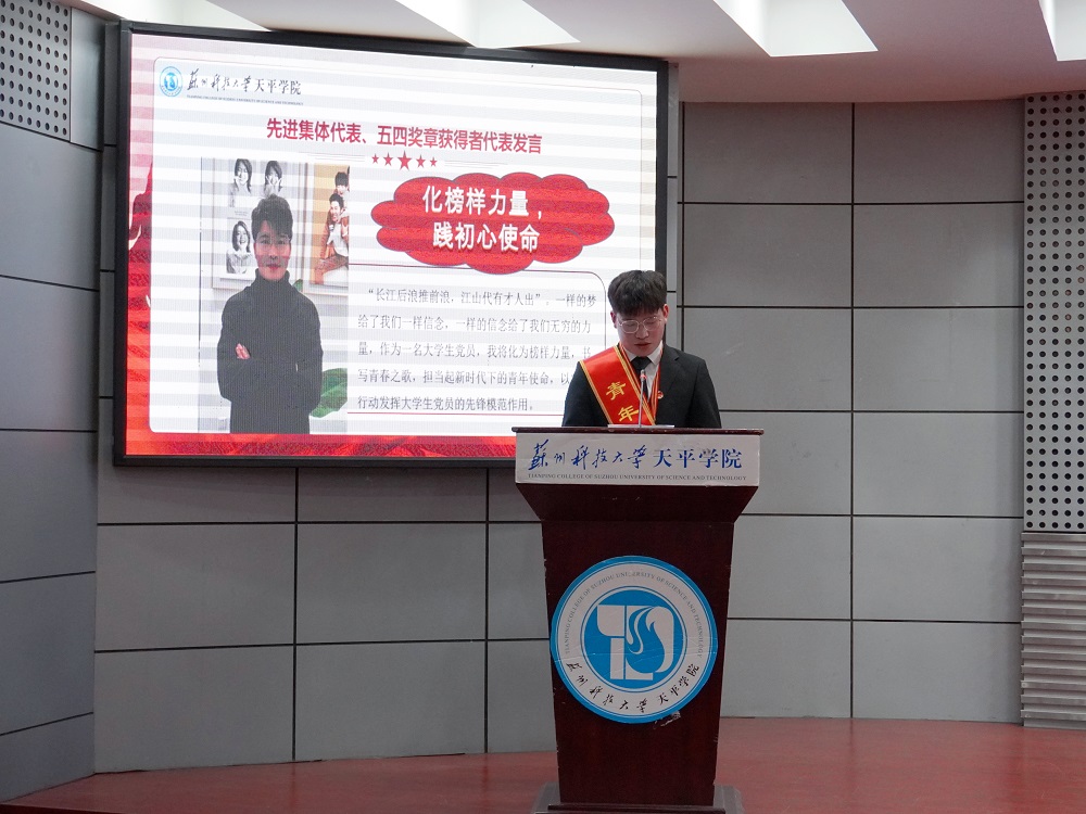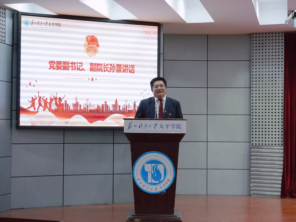 院党委副书记、副院长孙景在讲话中向青年朋友们致以节日的问候,希望广大青年要珍惜时光,不懈进取,用智慧和汗水在实现中华民族伟大复兴的历史进程中,更好地继承与弘扬五四精神,谱写无愧于新时代的青春之歌。他向全院团员青年提出三点希望:希望天平学子要有理想,树立“革命理想高于天”的坚定信念;要敢担当,保持“越是艰险越向前”的昂扬斗志;要肯奋斗,永葆“直挂云帆济沧海”的进取本色。