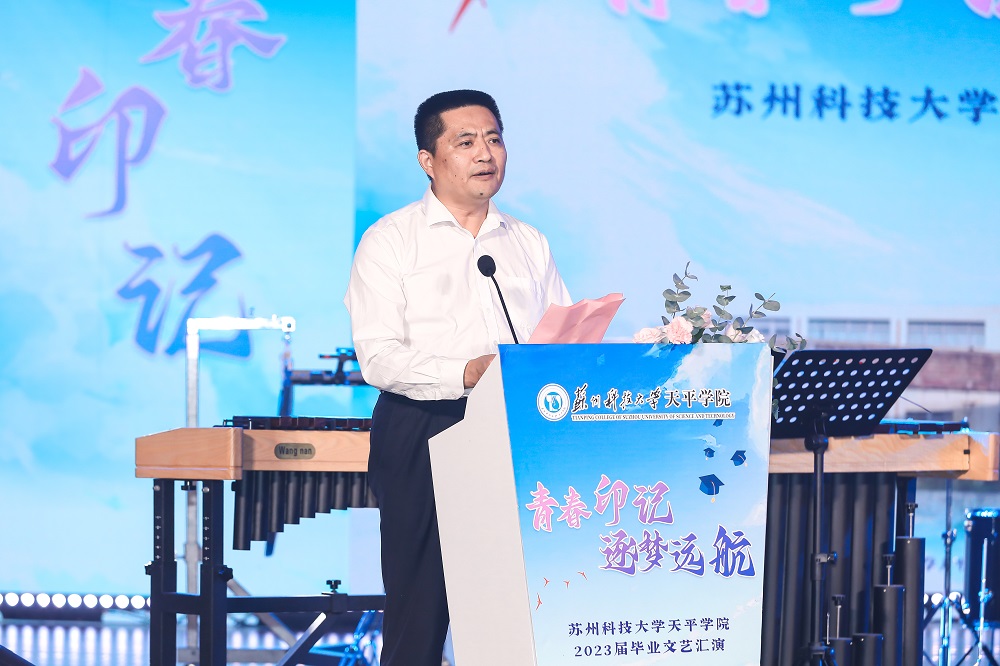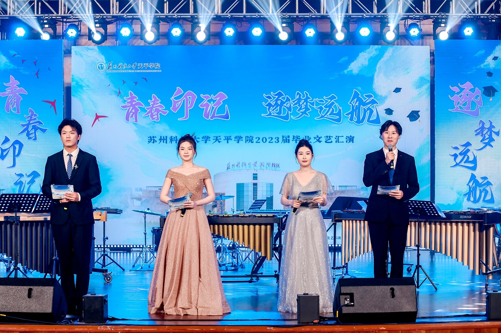 晚会分为“筑梦天平·再回首”“待续华章·铭初心”“踏歌远航·续新帆”三个篇章,节目类型涵盖打击乐、木管五重奏、歌曲、舞蹈、朗诵等多种形式。文艺汇演伊始,孙景书记致辞,他对到场嘉宾表达了诚挚的感谢,他深情地回忆了2023届毕业生在母校中的点滴,并为毕业生送上了美好的祝愿。