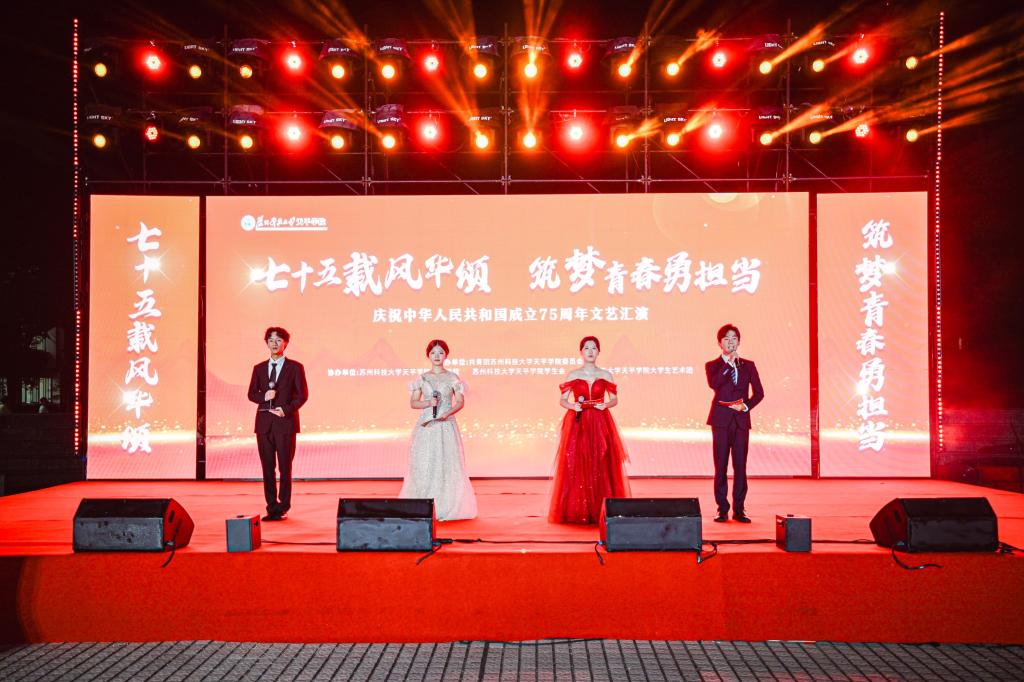 为庆祝中华人民共和国成立75周年,弘扬爱国主义精神,增强天平师生的凝聚力和向心力,9月27日晚,beat365“七十五载风华颂 筑梦青春勇担当”庆祝中华人民共和国成立75周年文艺汇演在天平校区图书馆广场举行。beat365官方网站党委常委、宣传部部长朱明珠,党委学生工作部部长、学生工作处处长张承祖,党委人民武装部部长、保卫处处长朱永涛,宣传部部长助理周丽娜,学院党委书记郑群,院长王建芳,副院长蒋永旗,党委副书记、副院长孙景,副院长张婧,各职能部门负责人、二级学院院长及辅导员老师出席本次晚会,与学生们共享视听盛宴。