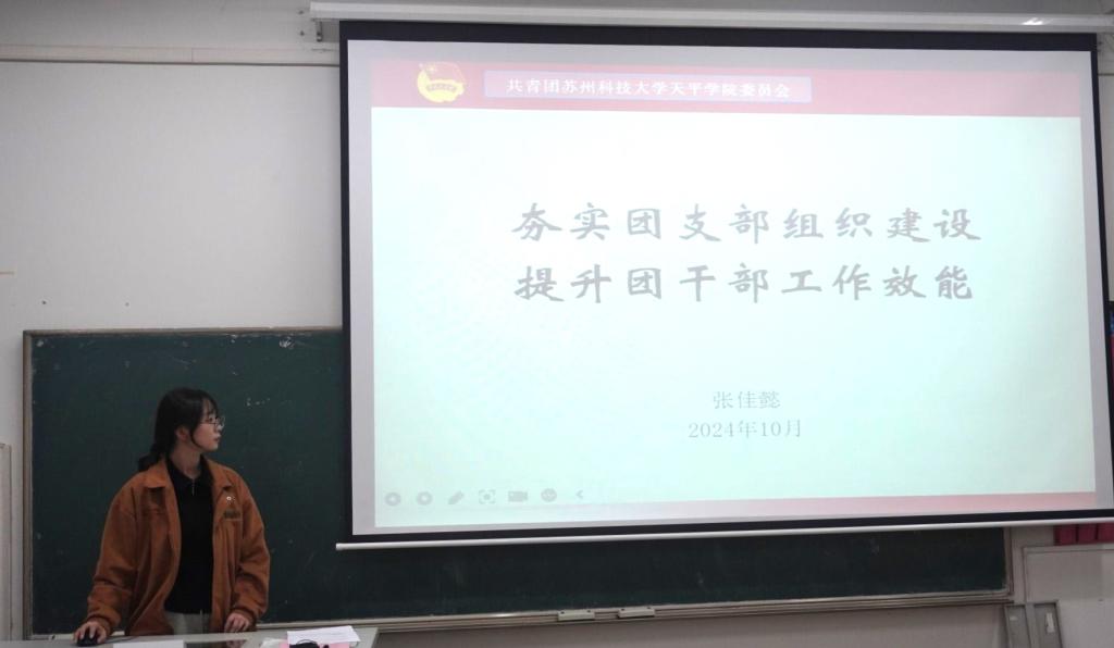 团委青年服务中心主任张佳懿同学以《夯实团支部组织建设 提升团干部工作效能》为题开展了基础团务知识和“智慧团建”系统业务专题培训。团委青年服务中心主任黄萌同学做“PU口袋校园”后台操作培训。五四红旗团支部代表英语2222班团支部书记王璐同学从“组织建设、活动开展、信息传达与反馈”等方面展示了团支部的成长之路、奋斗之旅。