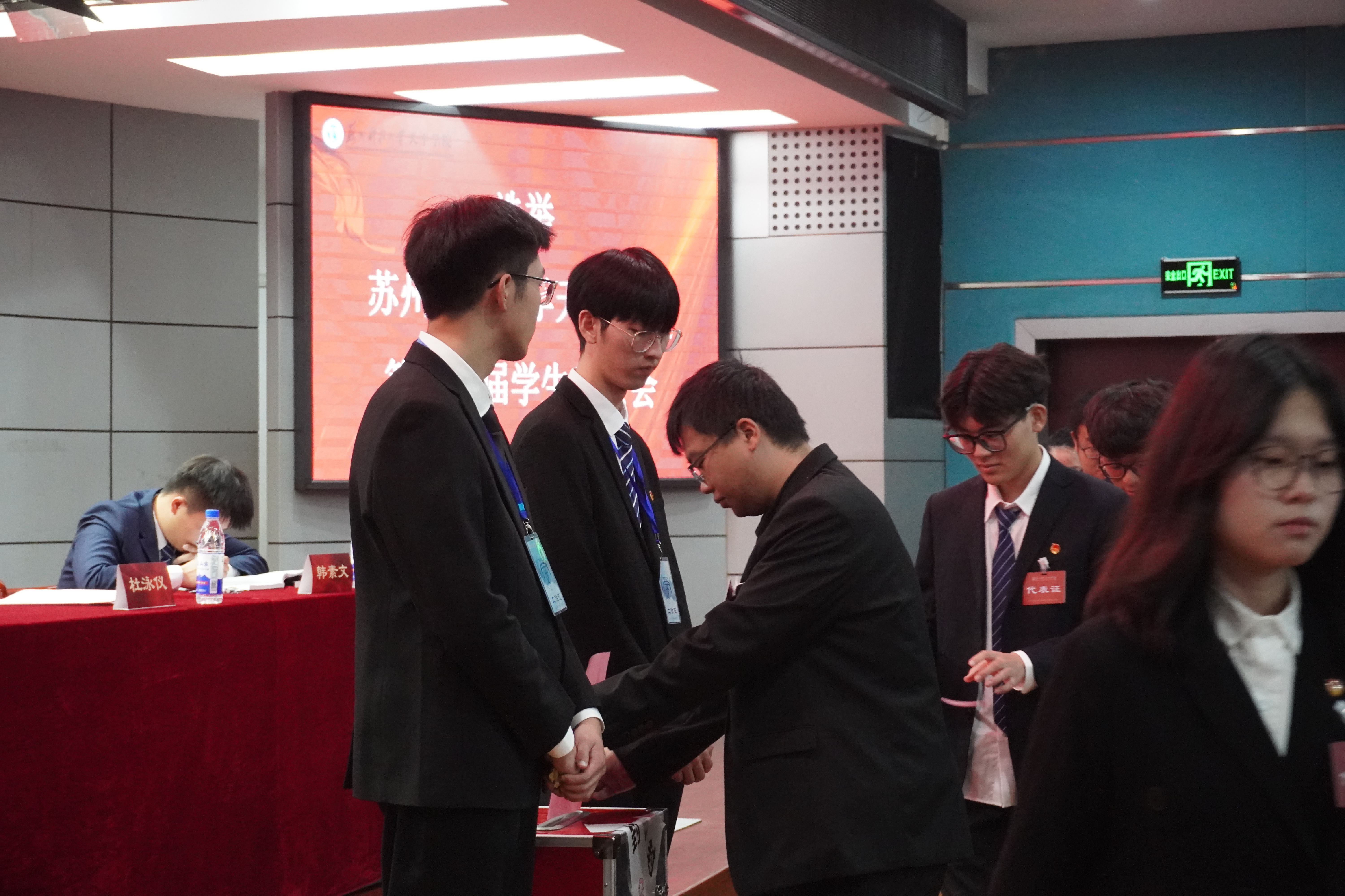 大会在全体代表齐唱国歌中开幕。开幕式上,苏州大学应用技术学院主席团成员周敬、苏州经贸职业技术学院主席团成员杨雨婷代表兄弟院校学生会致辞,beat365官方网站学生会主席团成员张昊欣代表上级学生会致辞,并向大会的召开表示祝贺。
