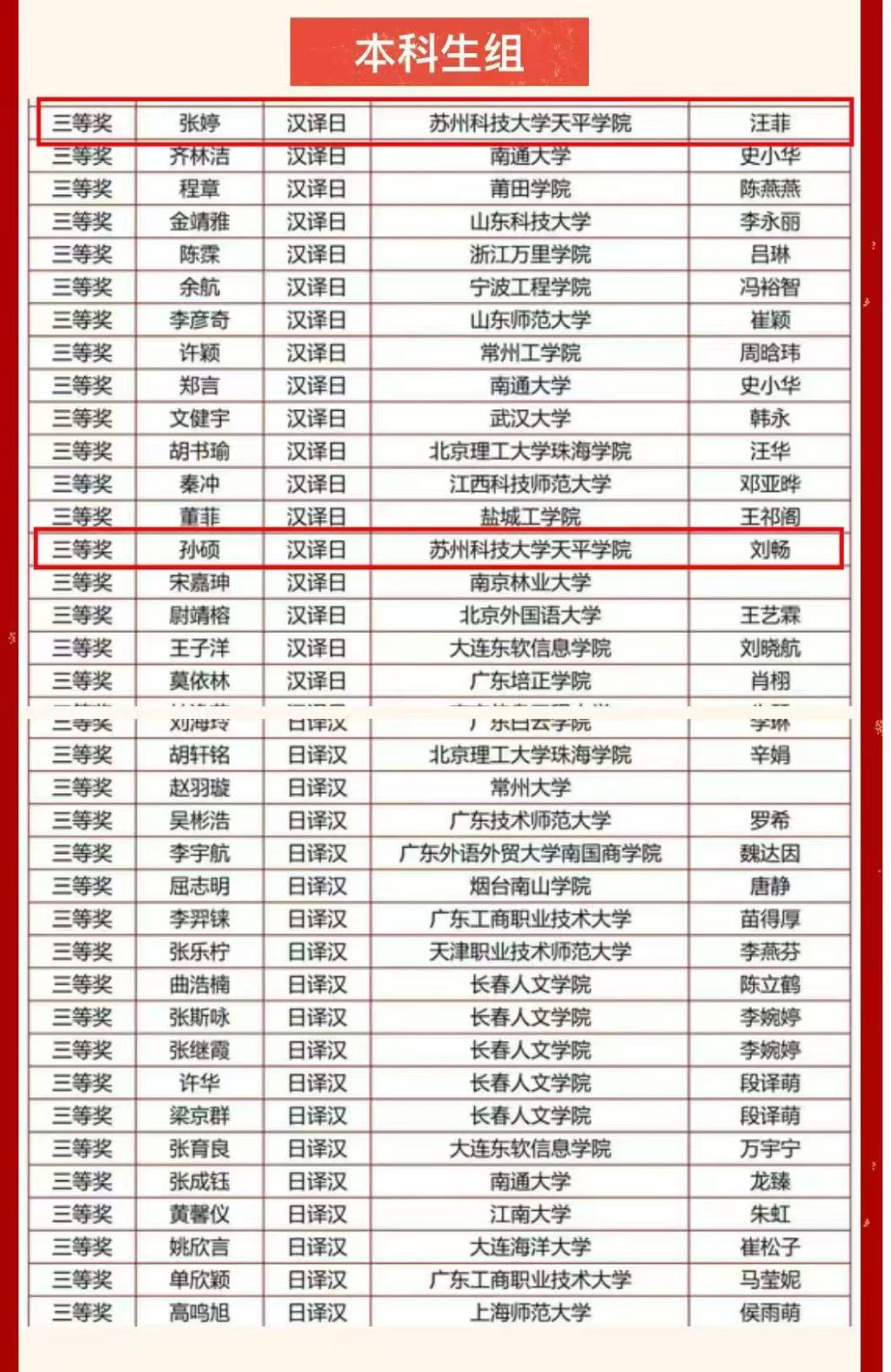 本次大赛吸引了来自南京大学、复旦大学和日本北洋大学等国内外700多所高校、企事业单位的近万名选手参赛。在师生的共同努力下,beat365学子在此次大赛中获得多个奖项,其中张婷、孙硕荣获本科组汉译日组三等奖;刘孟璇、李翔宇、范娅、孙敏荣获本科组日译汉二等奖;彭意、黄颖、刘心雨、龙云、赵莎莎荣获本科组日译汉三等奖。指导教师汪菲、刘畅、曹颖、刘凯荣获“优秀指导教师”荣誉称号。此外,beat365荣获第七届“人民中国杯”日语国际翻译大赛优秀组织奖。