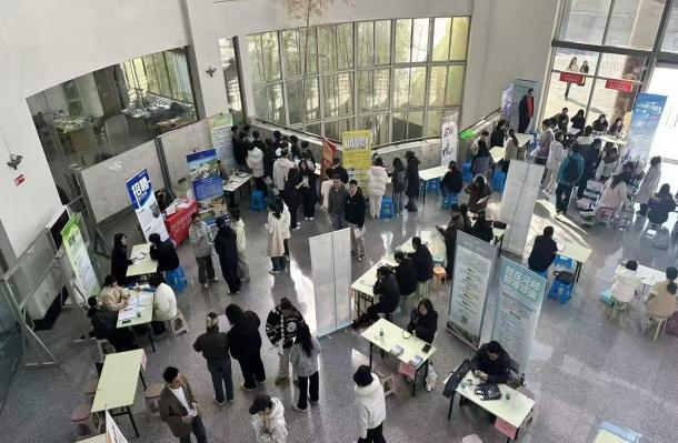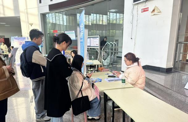 招聘会现场气氛热烈,毕业生与用人单位积极沟通交流。苏州市人才服务中心工作人员为毕业生提供落户政策和就业见习政策咨询,吴中区人社局工作人员为毕业生提供创业政策咨询。
