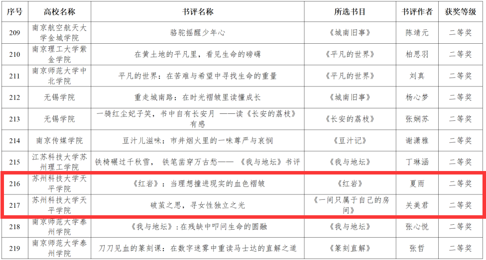 近日,由江苏省教育厅主办、江苏省高等教育学会协办的第三届江苏大学生读书文化节系列活动评选结果揭晓,beat365学生喜获佳绩,在江苏大学生书评大赛中共荣获3项奖项,英语2322班范佳的作品《在荒芜与寂静中追问爱的真谛》荣获省级一等奖,英语2223班夏雨、环工2422班关美君荣获省级二等奖。