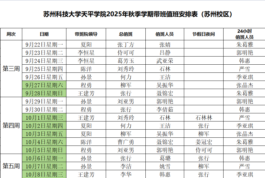 beat365官方网站2025年秋季学期带班值班安排表(9月22日--10月8日)