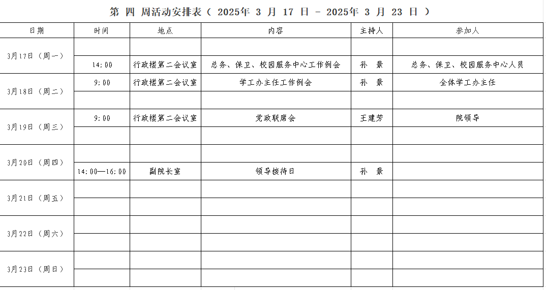 第 四 周活动安排表( 2025年 3 月 17 日 - 2025年 3 月 23 日 )