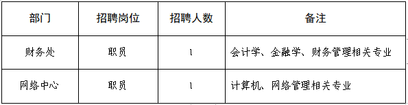 2.具有相关专业本科及以上学历,以及岗位所需的专业知识、工作技能和职业素养。其中财务处职员需具有助理会计师及以上职称。