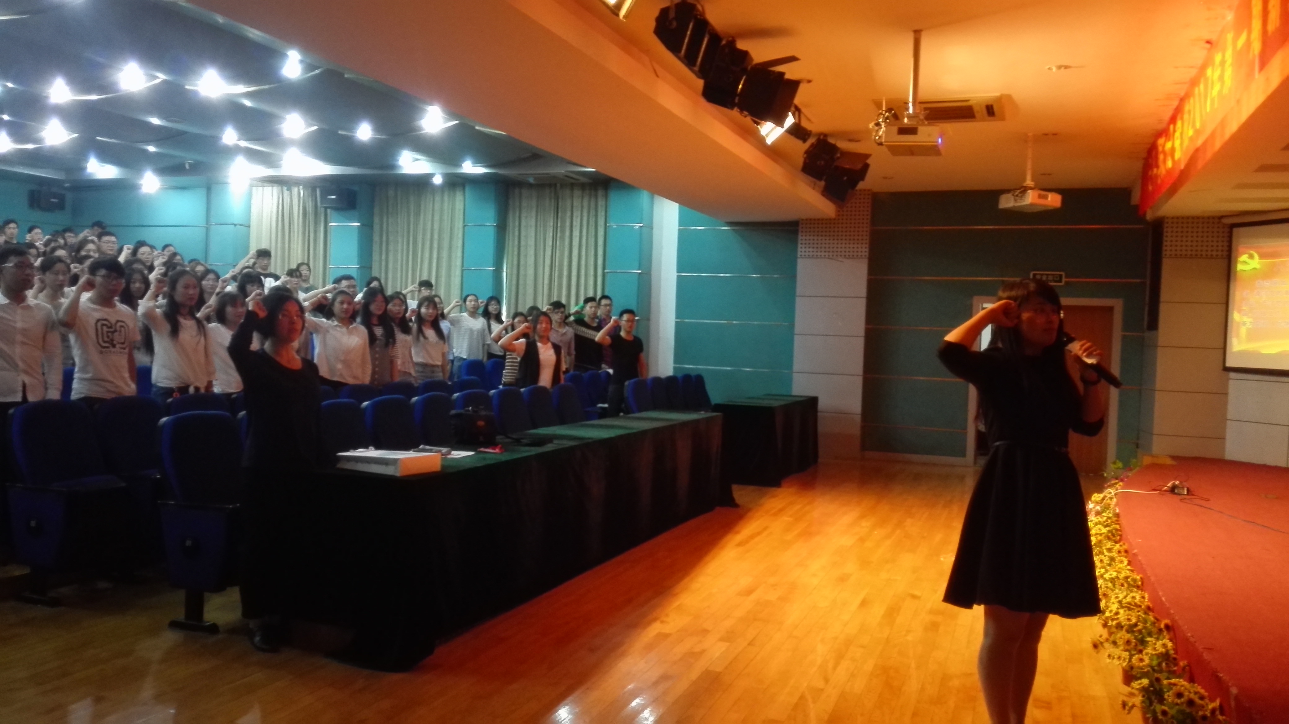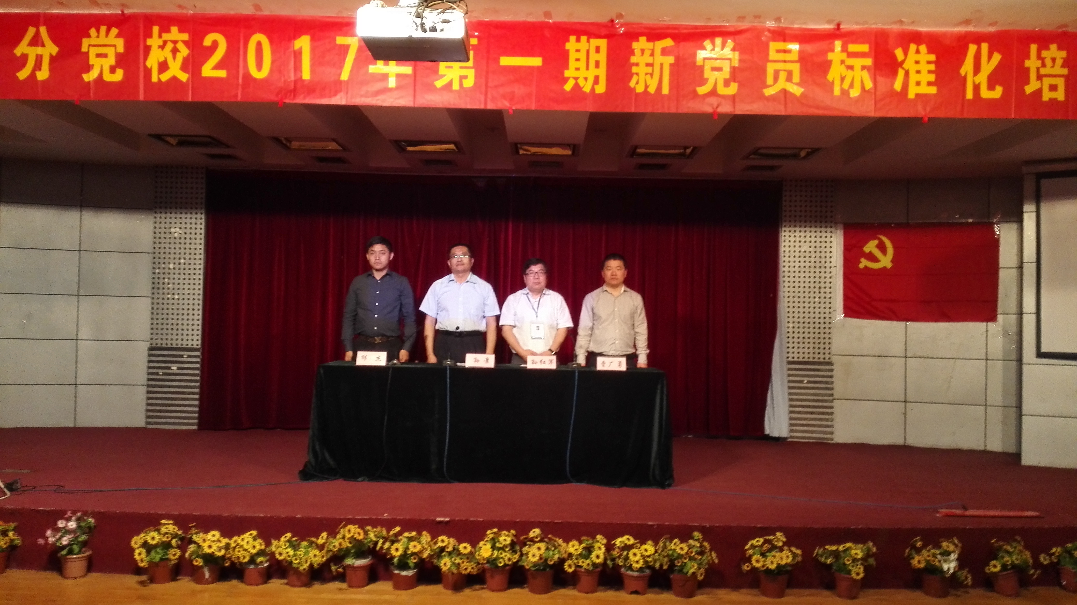 庄严的国歌拉开了本期培训班的序幕,曹处长介绍了培训内容和安排、考核结业的要求和注意事项。团委副书记带领全体党员面向党旗庄严宣誓。