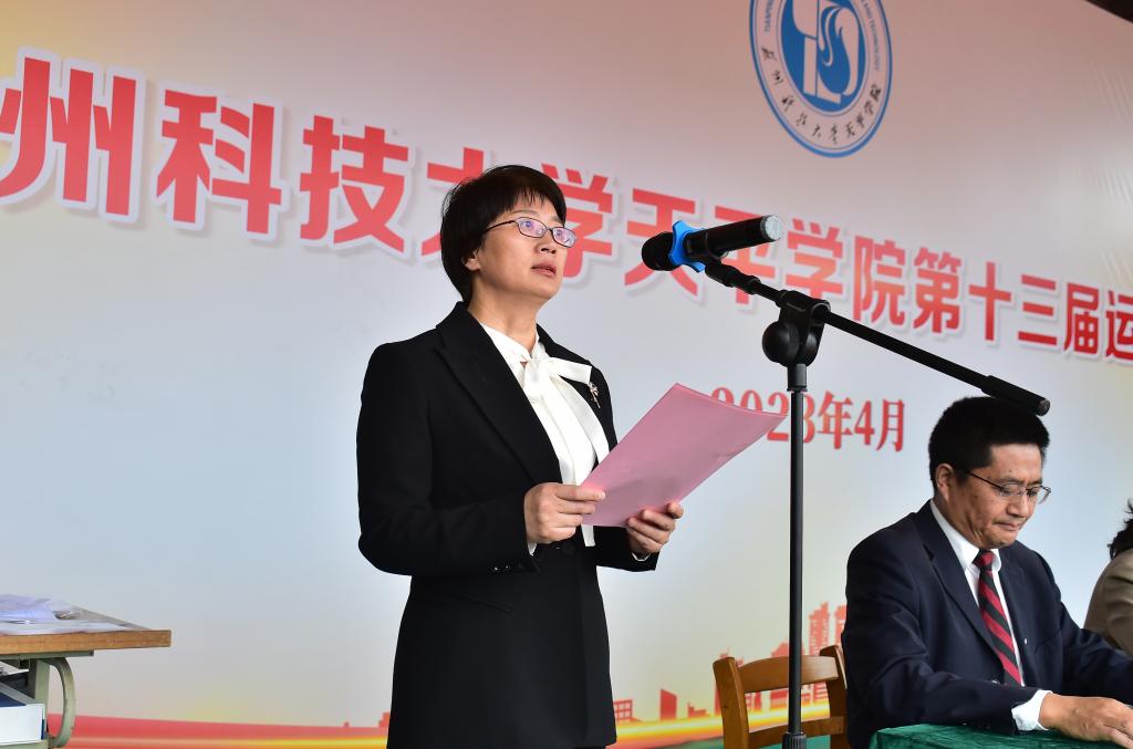 王建芳院长为本届运动会致开幕词,她充分肯定了近年来学院在院风学风、内涵建设、人才培养、科研创新等各项事业中取得的成绩,强调体育对于国家强盛、民族振兴有着重要意义,希望全体师生以本届运动会为契机,积极参加体育锻炼,形成体育运动常态化的良好氛围,把本届运动会办成安全、热烈、有特色的盛会。