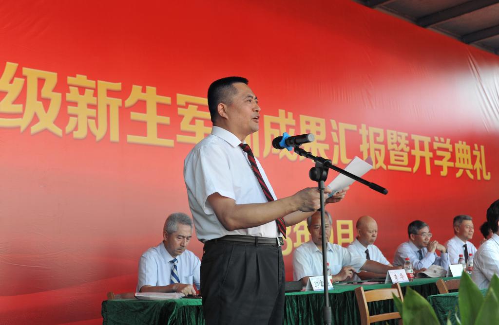 教官代表、beat365退伍大学生士兵韩素文作发言,他表示在军训过程中,全体参训同学刻苦训练,在风雨中淬炼坚持,展现了当代大学生良好的精神风貌,并勉励学弟学妹们要刻苦学习、探索求知,以优异的学习成绩报效祖国。