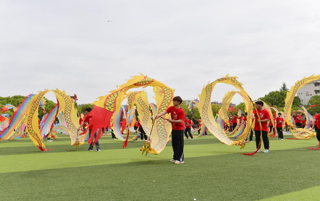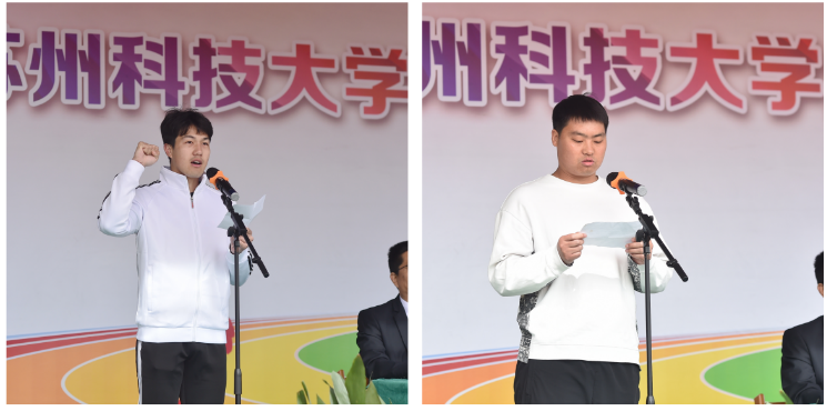 运动员代表段昕同学和裁判员代表崔笑林老师分别上台进行了宣誓。学院党委书记郑群宣布第十四届运动会开幕。随后表演方阵带来《龙韵》团体表演,为开幕式奉献了一场精彩的视觉盛宴。