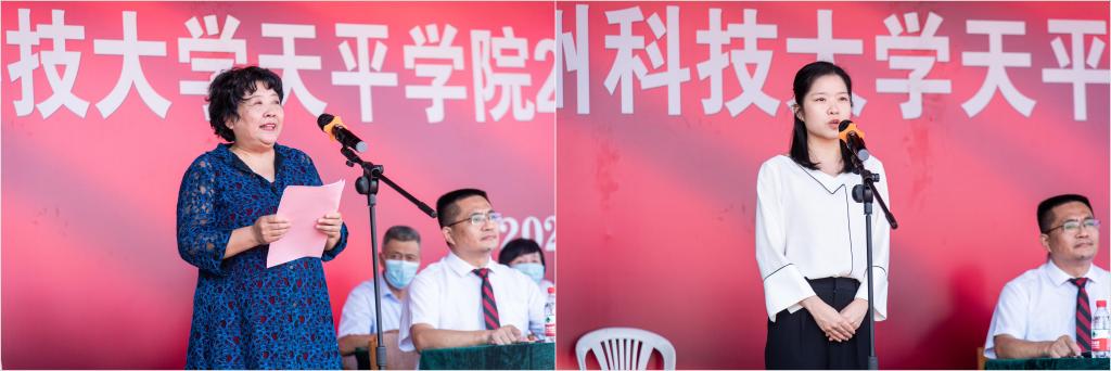 随后,各二级学院院长先后寄语新生,希望2022级新生珍惜时光、把握机会、学有所成、前程似锦。在领誓人的带领下,全体新生庄严宣誓,为即将开启的大学生活加油鼓劲,为自己的青春喝彩。