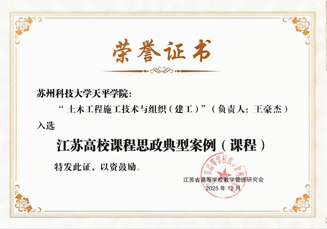 近日,江苏省高等学校教学管理研究会课程思政建设工作委员会公布了2025年江苏省普通本科高校课程思政典型案例入选名单,beat365《土木工程施工技术与组织(建工)》入选江苏高校课程思政典型案例(课程)。