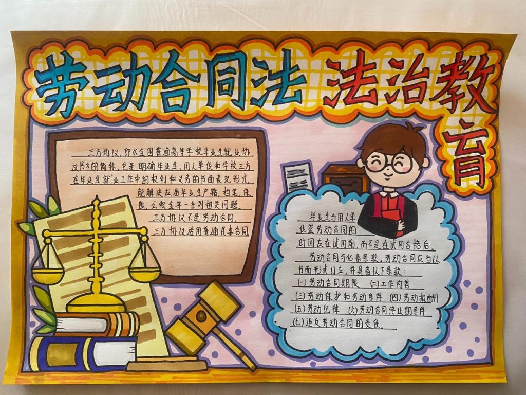 本次法治宣传教育周聚焦与学生关系密切的法律法规,用学生喜闻乐见的法制讲座、模拟法庭、观看法治教育系列片和专题手抄报等形式呈现,营造校园法治教育浓厚氛围,提升育人成效。活动邀请了苏州市公安局吴中分局民警徐静萱,开展题为“青少年违法犯罪主要情形及预防对策”的法治讲座,徐警官结合授课内容与同学们进行法律知识现场提问和互动交流,告诫同学们要遵纪守法,增强法律意识。本次讲座进一步筑牢了大学生的法治理念,强化了新形势下青年面对各类危险和违法犯罪诱惑的防范抵御能力。开展了模拟法庭活动选取民事案例-大学生兼职劳动者权益纠纷案,案件贴近大学生的实际生活,演出生动有趣,现场气氛轻松活跃,看“审判长”如何“调解”,公检法如何判案。组织学生观看电影《湄公河行动》,加深了beat365学生对于毒品行业和缉毒警察的了解,深刻认识到了国家为了维护人民的权益以及安全所做出的努力。同时,管理学院针对毕业生,开展了劳动法专题手抄报活动,普及了劳动法、劳动合同、劳动者的主要权利、社会保险制度等相关法律知识,提升即将毕业学生的劳动维权意识和能力。学院各班级团支部开展主题法治教育班会,围绕法律知识、如何遵守法律以及增强自我防范意识开展,通过PPT图片、文字、视频展示,直观、形象地向学生普及法律知识。