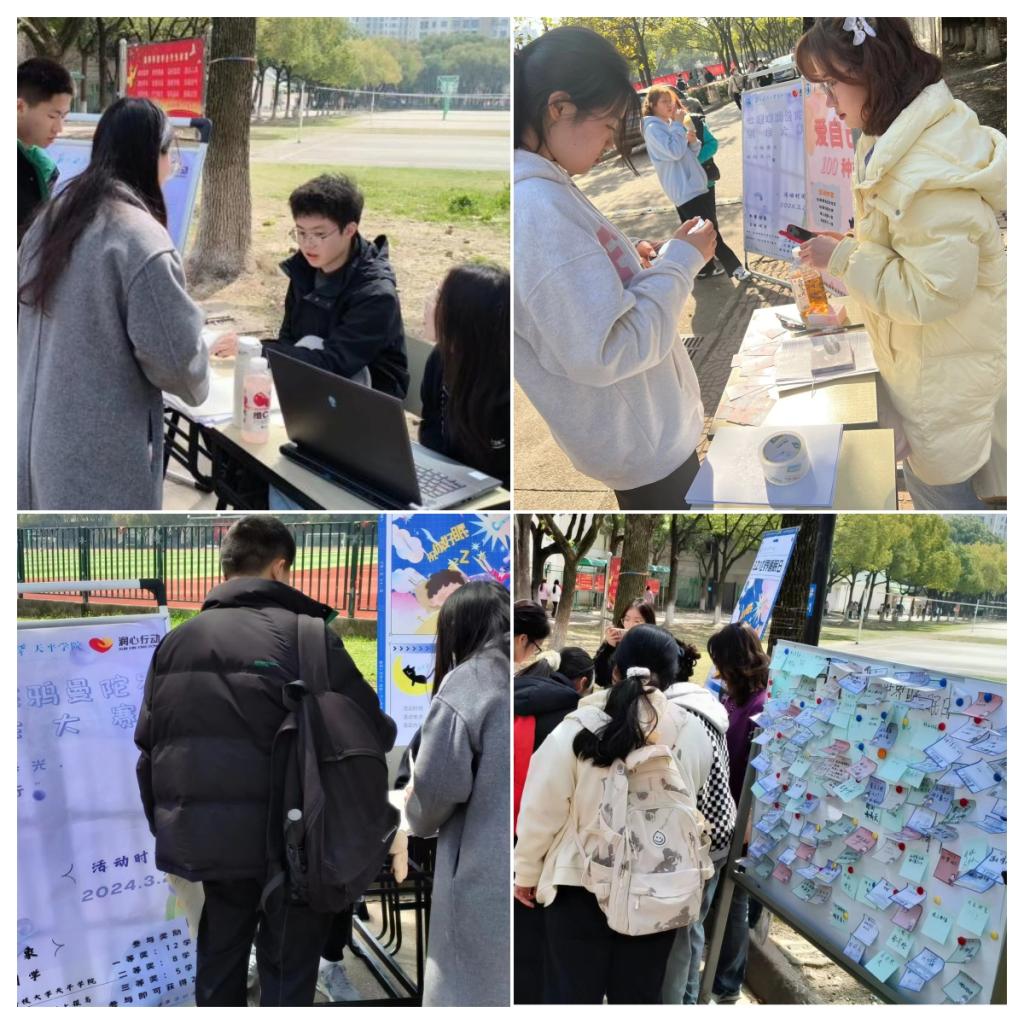 活动期间,学生们积极参与,推动了心理服务进社区,共同营造了积极向上的校园氛围。大学生心理健康服务中心将继续举办更多类似活动,关注学生心理健康,为师生提供更多关爱和支持。让我们携手共同努力,传递正能量,共同创造一个和谐宜居的校园环境!
