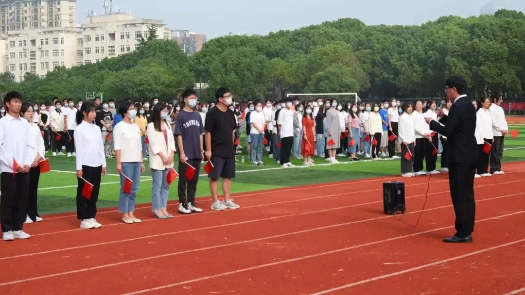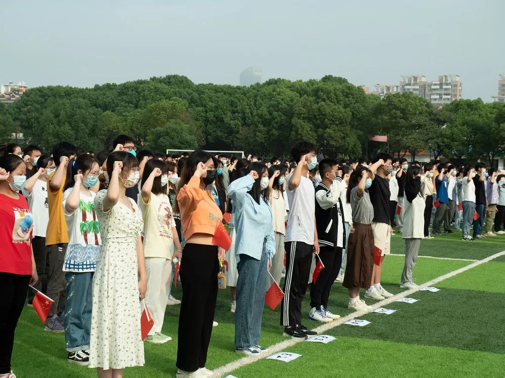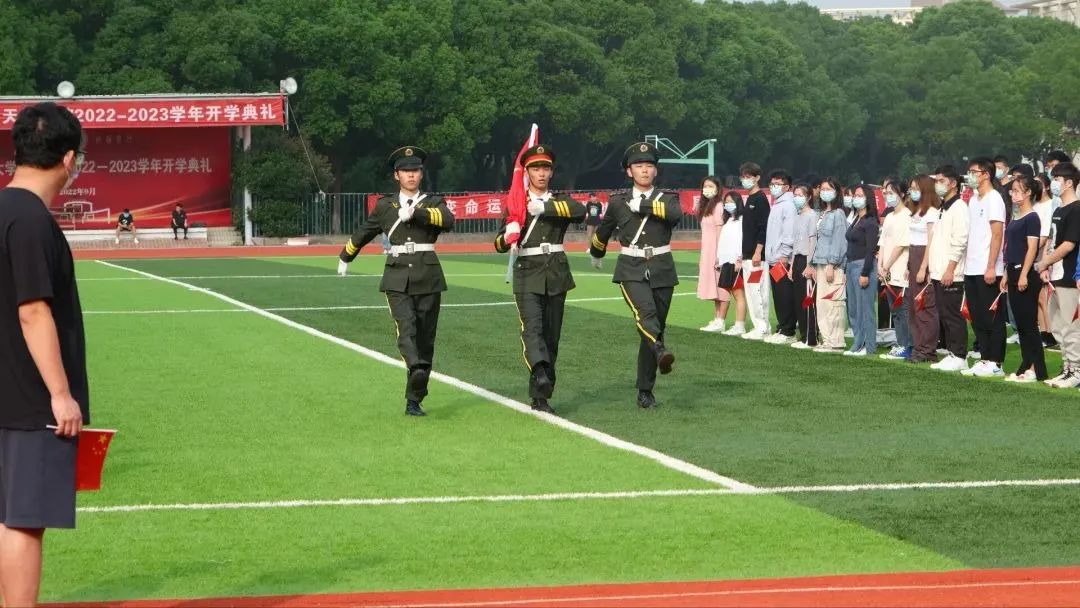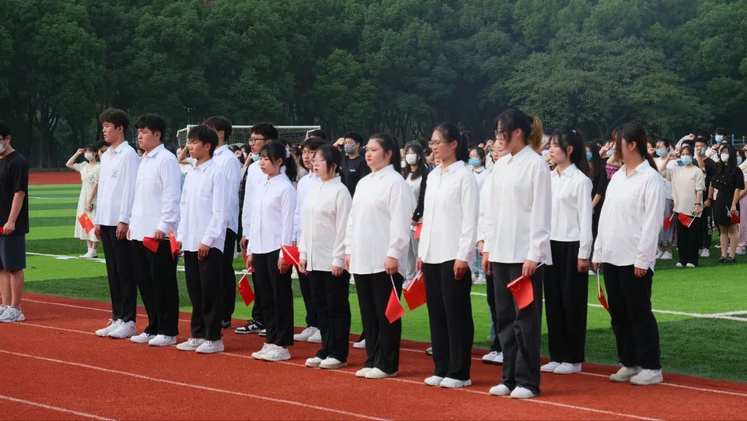 上午8时,伴随着乐曲,3名英姿勃发的国旗护卫队学生迈着铿锵的步伐,护送着鲜艳的五星红旗走向升旗台。“起来!不愿做奴隶的人们!把我们的血肉,筑成我们新的长城……”伴随着雄壮嘹亮的《义勇军进行曲》响起,鲜艳的五星红旗迎着朝阳冉冉升起,迎风飘扬。全体人员满怀崇敬之情面向国旗肃立致敬,行注目礼,高唱国歌,祝福祖国繁荣富强,祝福人民幸福安康。学生代表乔唐昊闻在红旗下发言,党的初心和使命是我们的情感之根,是我们的出发点,也是我们的归宿。作为大学生的我们应当坚决贯彻习近平总书记重要指示精神,以高度的政治自觉和责任担当,认真学习、坚持党的领导,为党的二十大胜利召开做出自己的贡献。接着,乔唐昊闻同学带领在场学生在国旗下庄严宣誓。