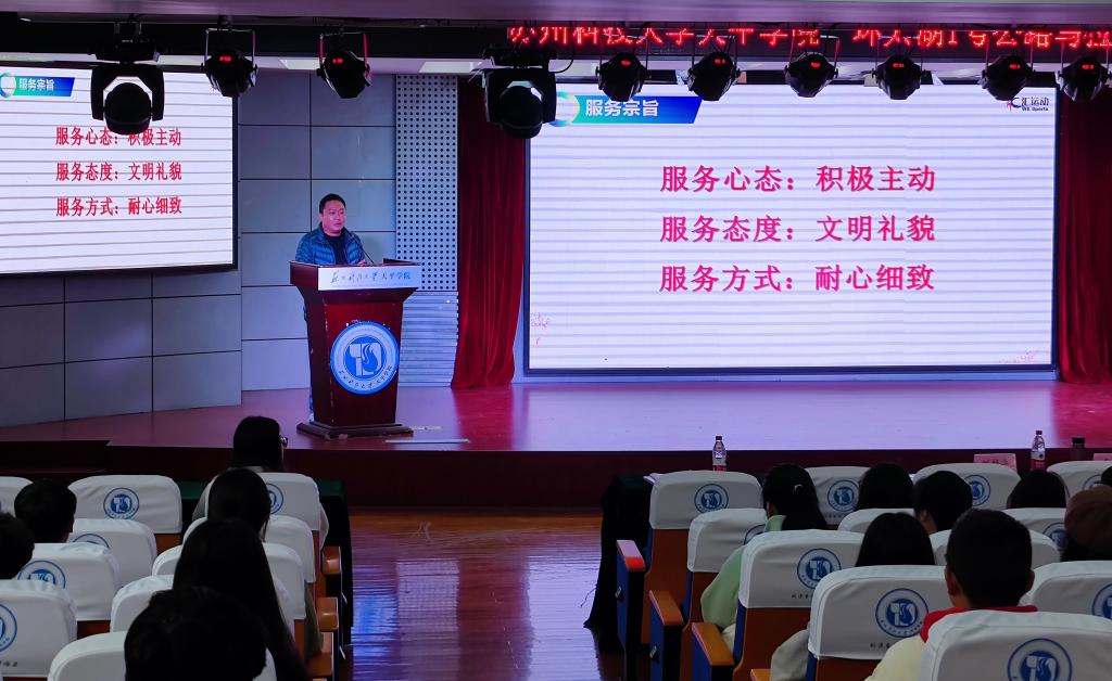 出征仪式共分为三项议程。第一项议程由院团委科创实践部部长刘梦平老师进行动员讲话。刘老师激励同学们担当作为、甘于奉献、积极进取、服务全局,用热情服务当好形象大使。