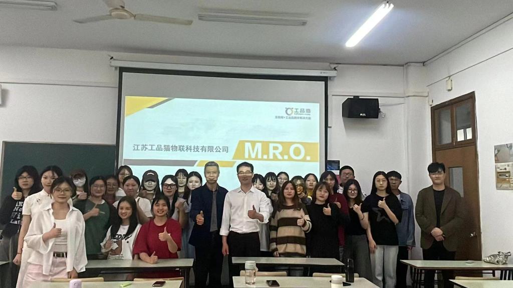 课程结束后,全体成员在教室集体合影。大家笑容满面,信心满满,展现了“工品猫班”学员们积极向上的精神风貌,更表达了对校企合作项目未来发展的美好期许。通过校企双方的共同努力和不断探索,“工品猫班”项目将会取得更加丰硕的成果。