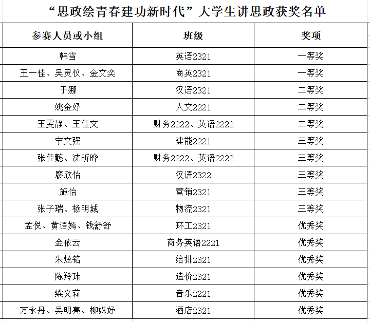 经过激烈角逐,韩雪、王一佳等分获一、二、三等奖。本届“大学生讲思政课”比赛从动员、初赛到决赛历时三个多月,是大学生思想政治教育的重要环节。大赛的成功举办,是对beat365思政课教育的一次检验,也是对“以赛促学、以赛促教”理念的生动实践。本次大赛充分展现了新时代大学生的精神风貌和理论素养,激发大学生对党的创新理论的政治认同、思想认同、理论认同、情感认同。有助于激励大学生在实现全面建设社会主义现代化国家、全面推进中华民族伟大复兴新征程上主动担当作为,逐梦建功新征程。