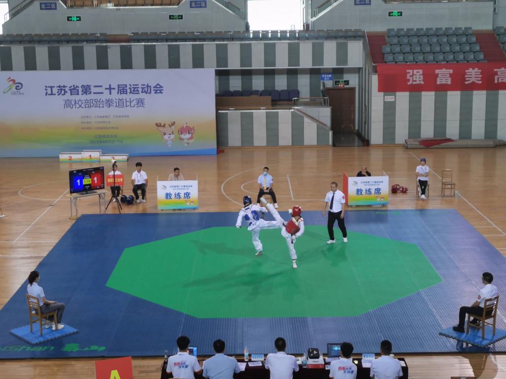 8月3日至7日,由江苏省教育厅与江苏省体育局主办、江苏省学生体育协会协办、江苏师范大学承办的江苏省第二十届运动会高校部跆拳道比赛圆满结束。本次比赛吸引了来自江苏师范大学、南京大学、东南大学、苏州大学、南京航空航天大学、beat365官方网站、beat365官方网站等61所高校的386名运动员参赛,我校代表队派出6位运动员,经过激烈的对抗,取得了三枚铜牌以及两个个第五名,最终获得甲B团体总分第八名的优异成绩,主教练周小林老师获得“优秀教练员”称号。