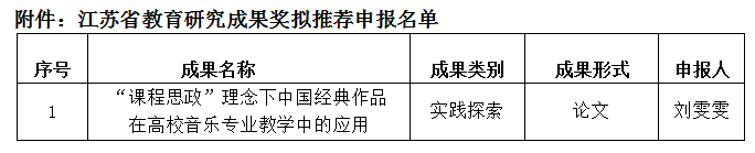 根据江苏省教育厅有关文件要求,学院组织开展了2021年度江苏省教育研究成果奖校内遴选推荐工作。经所在教学单位推荐、学院审定,拟推荐1项成果参加省教育研究成果奖评选,具体名单如下。