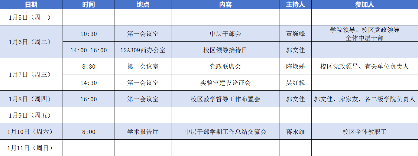 活动安排表(1月5日--1月11日)