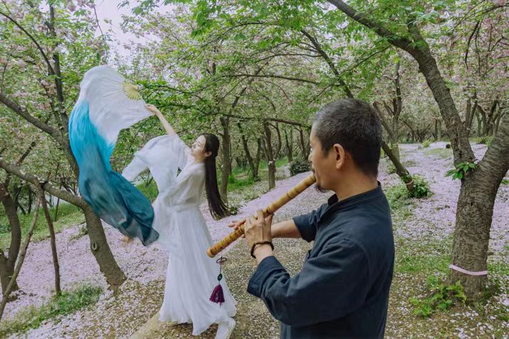春樱盛景,应有丝竹相伴。我们邀请了本校同学吹笛,一首《赤伶》带我们梦回古代。还有洞箫艺术家江南老师的友情演奏,高超的技艺让箫声散发着一种让人心停留的静。