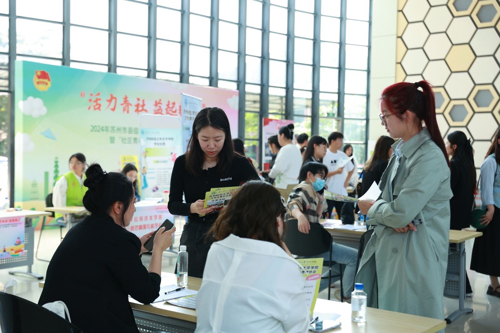 紧接着,苏州市团属青年社会组织服务资源库正式发布。多家团属青年社会组织代表手持“名称牌”,集中发布了各自的“品牌活动”和“特色项目”。天平学院青协的志愿者们认真学习了这些创新成果,为未来的志愿服务活动提供了宝贵的参考。