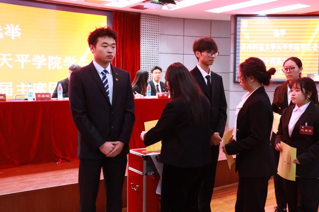 在大会正式会议上,全体代表听取了学生会工作报告。报告回顾了过去一年学生会的工作,总结了近一年来取得的成绩,提出了本次大会主要任务,并对未来一年的工作做了规划。代表们积极履职尽责,踊跃建言献策,共商发展大计。通过投票选举产生了新一届学生委员会委员和主席团成员。大会闭幕式上,院团委老师陈箫箫致闭幕词。大会圆满完成了各项议程,在《国际歌》歌声中胜利闭幕。