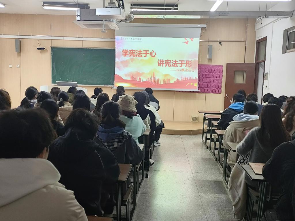 2024年12月4日是第十一届国家宪法日。为深入学习贯彻党的二十大精神和习近平法治思想,加强宪法法治教育,弘扬宪法法治精神,普及宪法法治知识,培育宪法法治观念,土木工程学院开展“宪法晨读”活动。