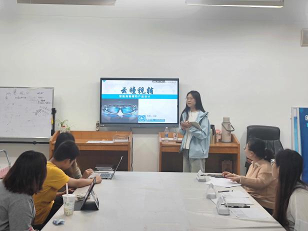 比赛现场气氛热烈,各参赛团队代表依次上台进行项目展示。项目负责人结合精心制作的PPT,详细阐述项目的核心内容、市场定位以及盈利模式,评委们认真聆听并记录要点。