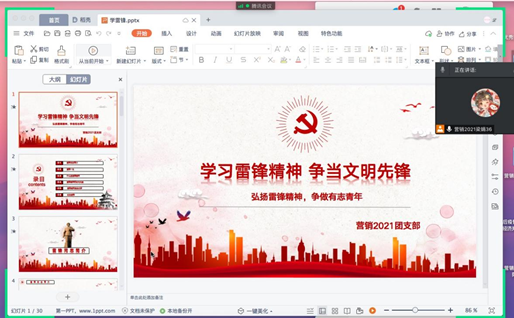 为响应学院团委弘扬雷锋精神,争做青年志愿者号召,勉励广大青年学子要学习雷锋为民情怀和“吃苦在前、享受在后”的奉献精神,进一步引导全院团员青年培育和践行社会主义核心价值观,推动雷锋精神薪火相传,beat365专门举办了一次“学雷锋”主题微团课,管理学院从18级到21级的学生都积极参与其中,以班级为单位学习雷锋精神。雷锋精神概括地说就是中华民族传统美德与英雄主义、社会文明的结合。团课结束后,同学们纷纷表示受益匪浅,更加深入地了解到了雷锋精神并每时每刻地怀揣着这一精神追求。