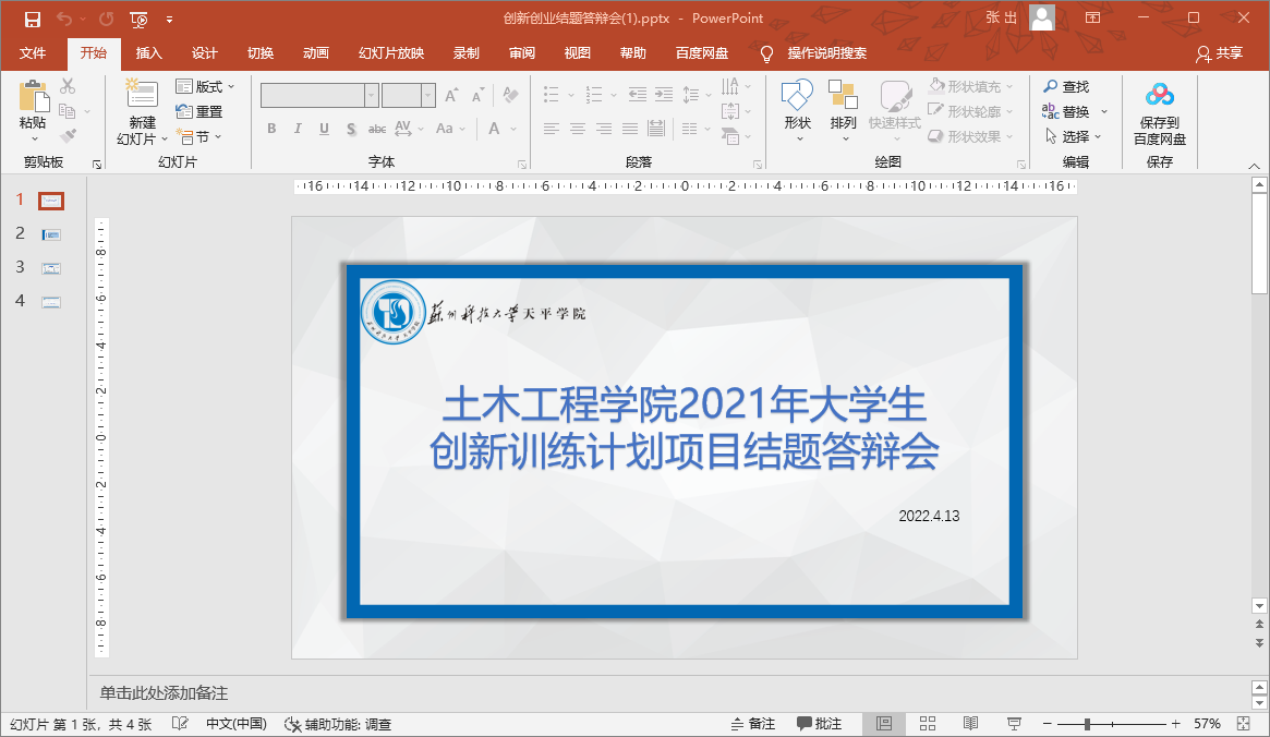为规范beat365创新创业教育管理、提升beat365学生创新创业能力,积极调动beat365学生创新创业的积极性,4月13日下午,土木工程学院开展了大学生创新训练计划项目结题线上答辩会。本次答辩共4组,其中省级项目3组,院级项目1组。会议由土木工程学院团总支书记汪凡琦老师担任主持人,同时邀请李蕾老师,王豪杰老师,以及周娟老师担任评委,对本次答辩进行评审、指导和总结。