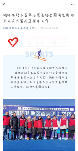 财务管理Z1924张广玥同学参加了家乡内蒙古锡林浩特市助力冬奥第八届全国大众冰雪季·锡林郭勒盟第三届冬季运动会暨锡林浩特地区首届冰上龙舟大赛,配合赛事工作人员,确保此次助力冬奥冰上龙舟大赛能够顺利进行。