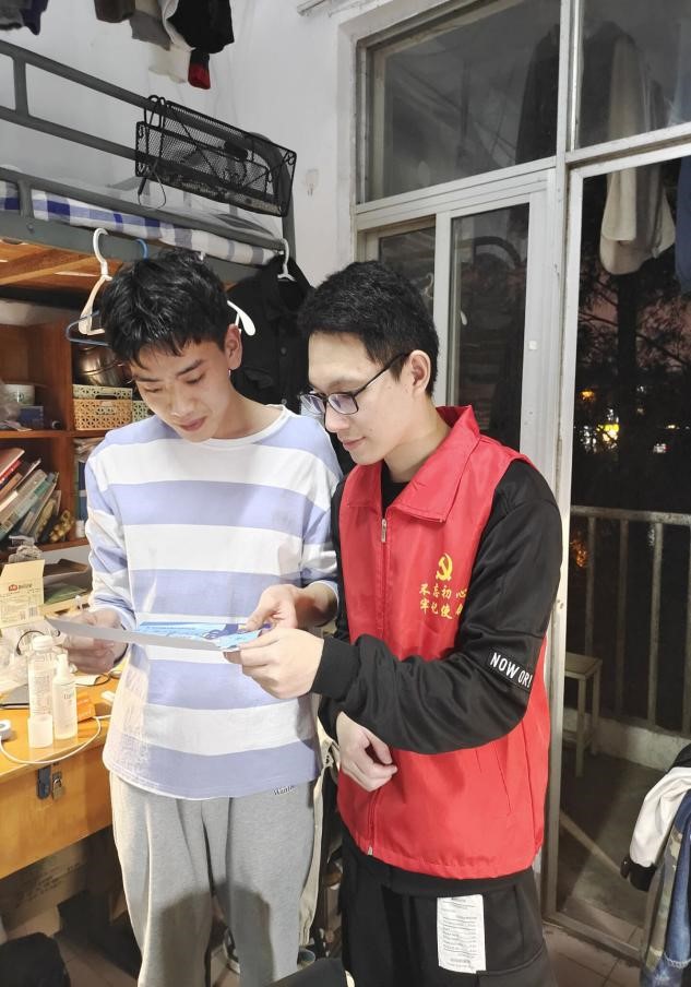 为了加强宣传效果,切实起到警醒作用,学生党员们带着反诈骗宣传的手册,深入石湖校区和江枫校区的学生公寓,营造出浓厚的反诈骗宣传氛围,高效高质地达到了宣传效果。党员志愿者们在进公寓前,集体参加宣传培训,明确工作任务与分工,全身心投入到走访宣传工作中,通过剖析发生在同学们身边的真实案例,讲解了如何防范电信诈骗,并列举许多防范诈骗的要点,加深同学们对电信诈骗手段的了解。同学们纷纷表示,在日常生活中,这些防诈骗手册能起到很好的警醒作用,能够及时提醒并制止转账等操作。