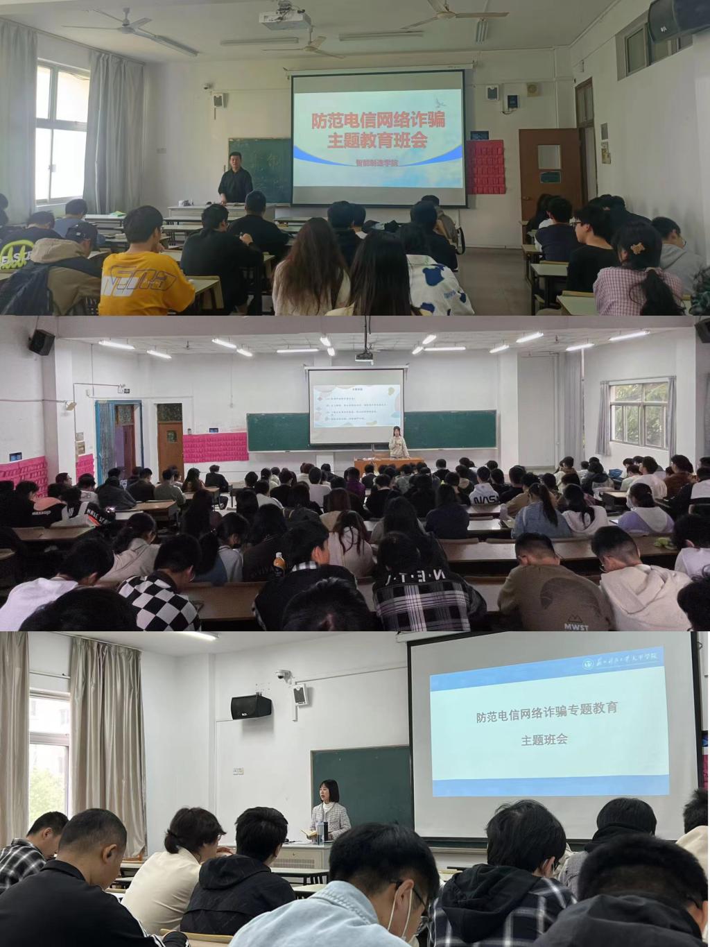 为进一步加强学生防范诈骗安全教育,提高同学们防范、识别网络电信诈骗意识,维护人身财产安全,提升自己保护能力,预防违法犯罪发生,智能制造学院在各年级中积极组织开展"防范电信网络诈骗”主题教育班会活动。