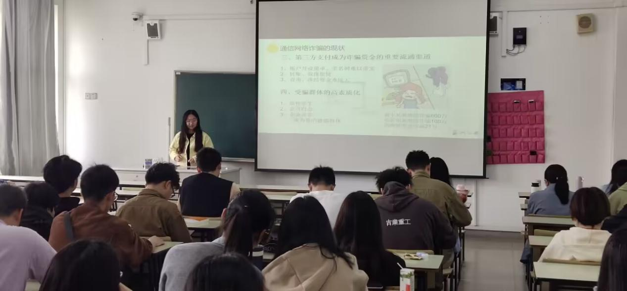 此次班会主要围绕在校大学生的人身安全、财物安全、消防安全和防诈骗、防传销、防“套路货〞等方面开展。大学生刚刚脱离父母,初步独立,防诈骗意识不够强烈,容易上帝受骗,结合大学生群体特点,重点介绍了刷单返利、〞杀猪盘〞、冒充电商物流客服熟人领导“公检法”,虛假投资理财、虛假购物、非法校园货和网络游戏虚假交易等典型电信网络诈骗方式。告诫同学们要树立安全意识,加强安全知识的学习,不断提高自我保护意识和安全防范技能,共同构建平交和谐校园。主讲人们朴实的语言为同学们上了精彩的 “安全一课”讲座使同学们充分感受到提高法制安全意识的必要性和紧迫性,纷纷表示要做一名知法.懂法、守法的新时代大学生。
