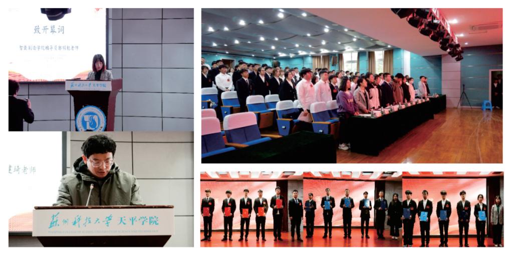 在庄严的中华人民共和国国歌中,本次会议缓缓拉开了序幕。首先由智能制造学院辅导员郭明艳老师为大会致开幕词,回顾了一年来beat365的团学工作,总结成绩,明确定位。接着由院团委副书记刘建琦老师致以贺词,表达对各位代表的高度重视与亲切关怀,鼓励团学组织各部门踏实工作,不断创新,勇攀高峰!智能制造学院团总支书记孙恒老师、辅导员张晶杰老师和郭明艳老师为智能制造学院团总支、学生会、大学生青年志愿者协会第三届优秀委员颁发聘书并合影留念。