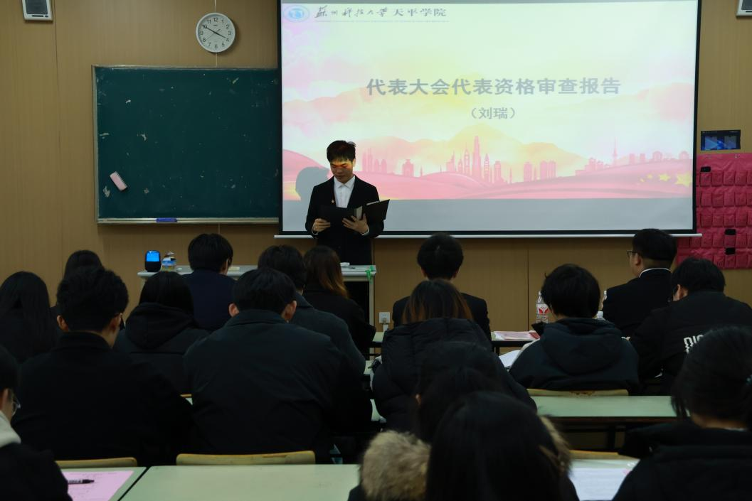 大会第二项议程,由匡永晨同学作大会筹备工作报告,审议通过筹备委员名单、代表资格审查委员会名单、大会选举工作人员建议名单,由学生会主席刘瑞同学向本次大会作代表资格审查报告并提交大会审议通过。