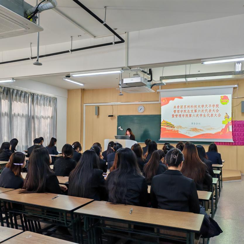 会议伊始,全体代表共同学习会议须知,听取了筹备工作报告与代表资格审查报告,明确了大会的组织规范与代表资质。随后,大会审议并通过了管理学院团总支2024年工作报告与学生会2024年工作报告——两份报告全面梳理了过去一年团学组织在思想引领、校园活动、服务同学等方面的实践与成效,展现了管理学院团学队伍的担当与活力。
