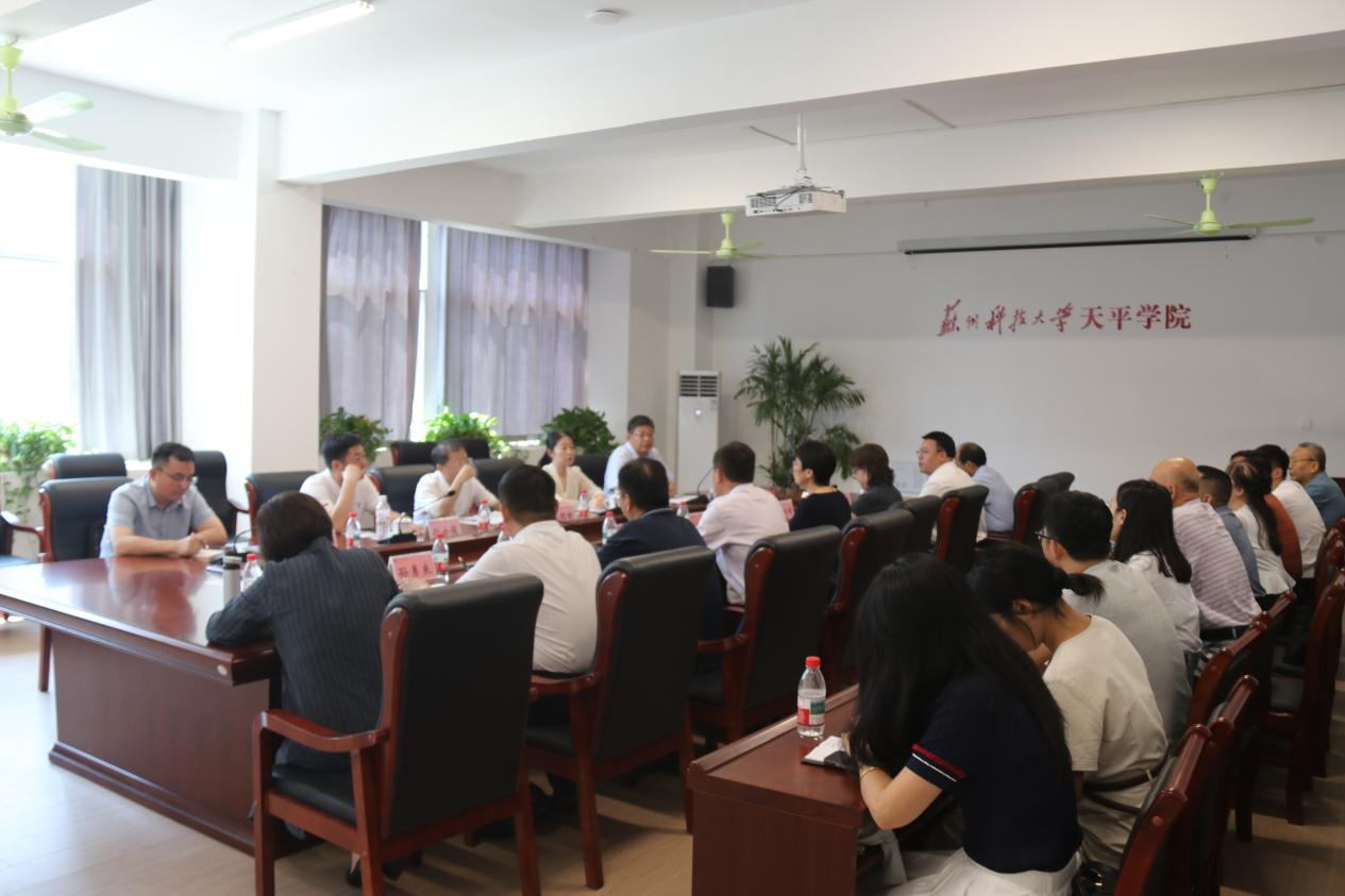 汇报会后,姜朋明等领导参加了南京校区教职工座谈会。在听取教职工代表发言后,姜朋明指出,南京校区教育教学与管理工作不仅要延续苏科大、天平学院优良办学传统和管理方式,也要结合工作实际进一步创新工作方式,为校区发展和人才培养做出新的贡献。他强调,学校高度重视教职工在南京校区的工作、生活保障,南京校区党总支、管委会要进一步关心教职工,广泛听取教职工意见,进一步优化教职工工作和生活条件,提高教职工的幸福感和获得感,为南京校区高质量发展夯实基础。